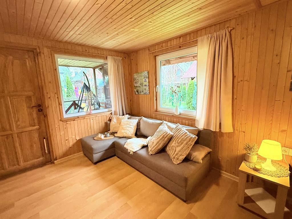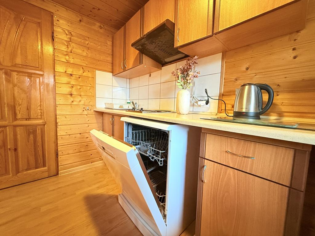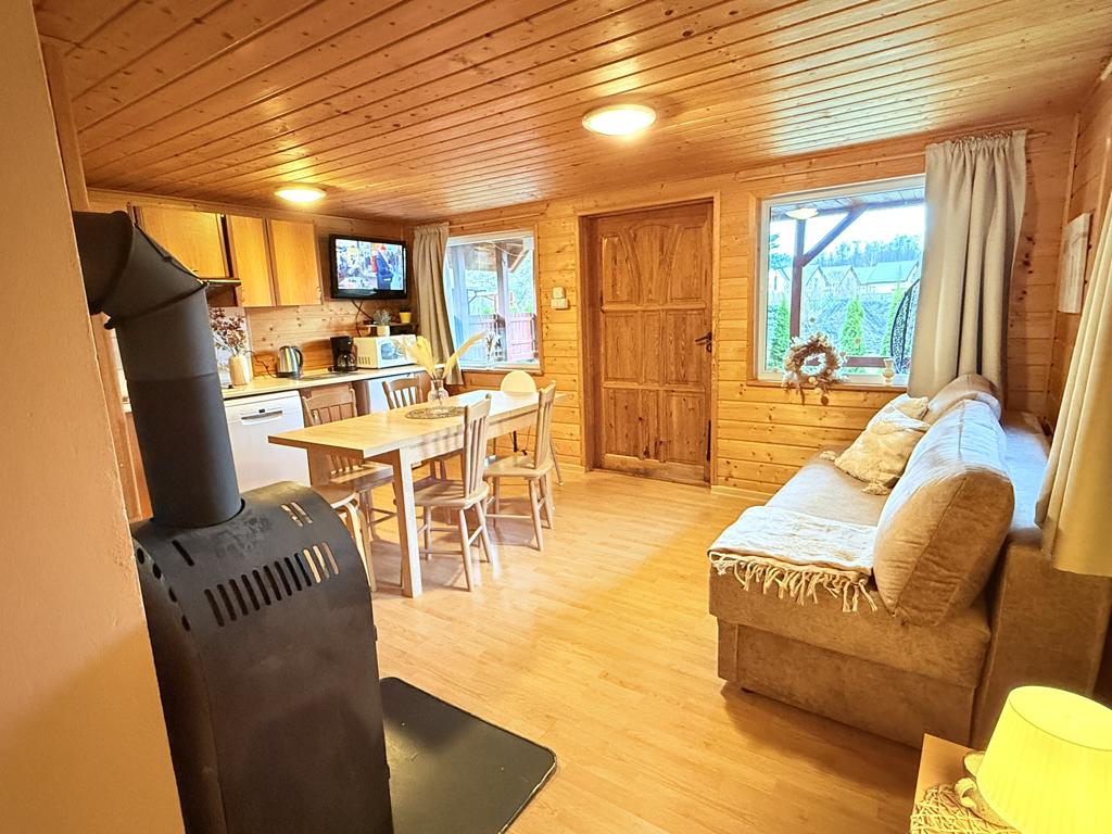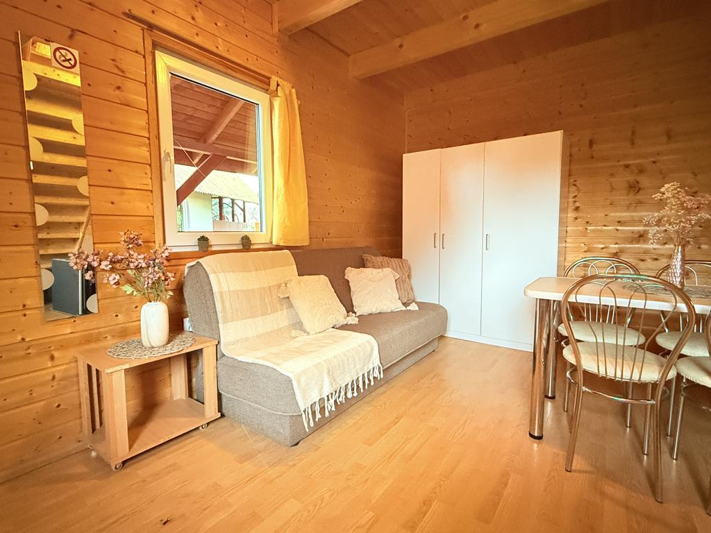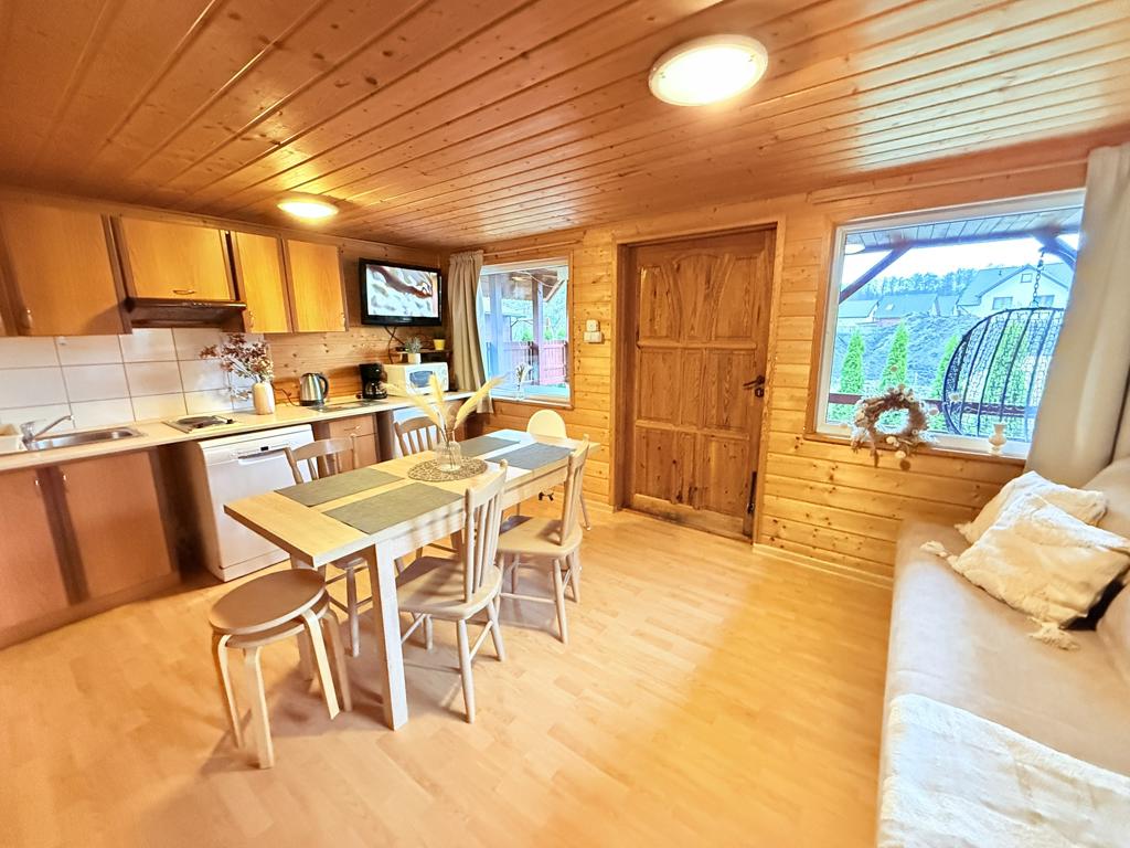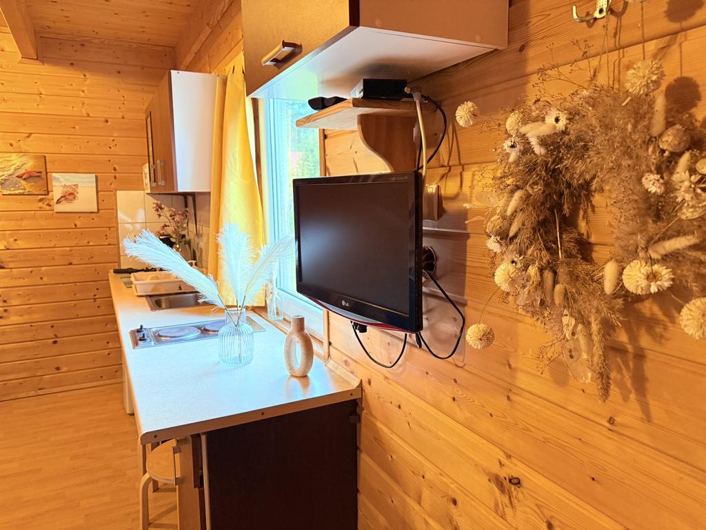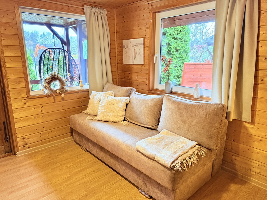 Dodatkowo dostępny jest telewizor z programami SAT, mikrofalówka, lodówka, czajnik oraz wentylator. W wybranych domkach czeka także klimatyczny kominek – idealny na chłodniejsze wieczory.