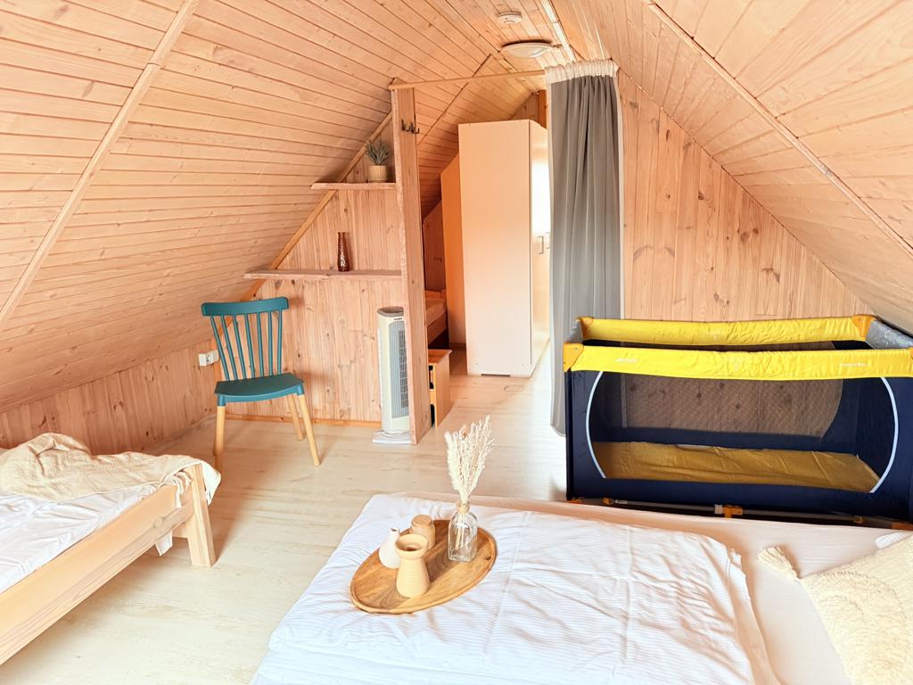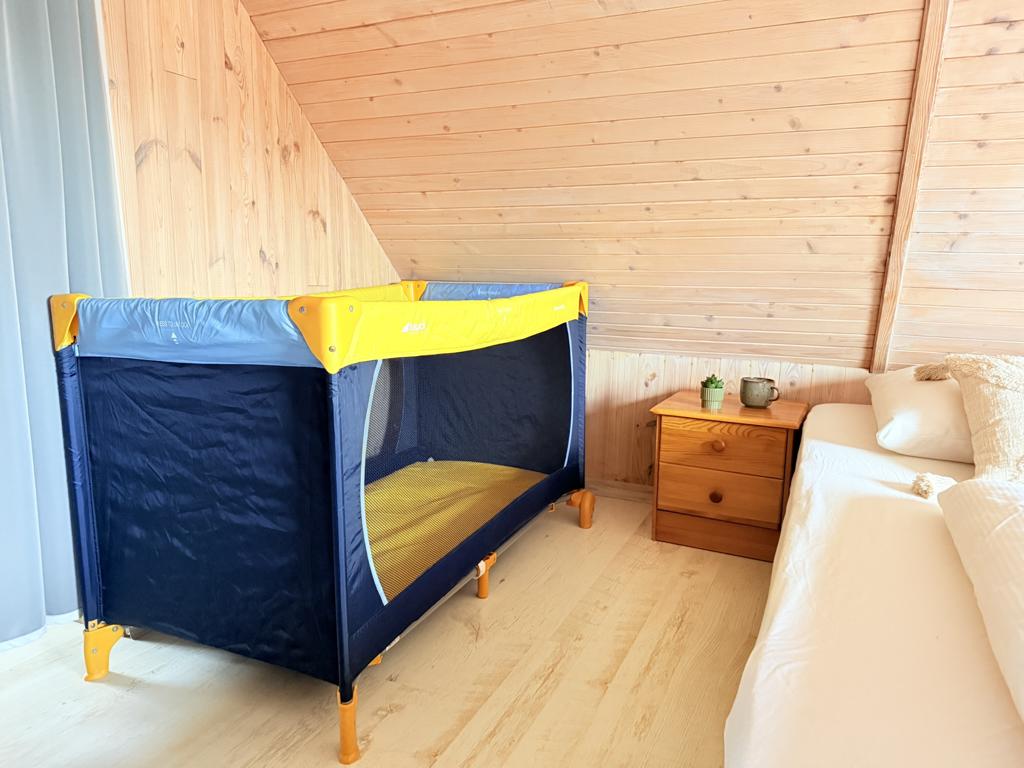 Nasze domki zostały starannie wyposażone, aby zapewnić komfortowy i przyjemny pobyt dla całej rodziny. Wewnątrz znajdziesz klimatyzację, przytulną pościel, łóżeczka dziecięce oraz komplet naczyń, dzięki czemu codzienne życie staje się wygodne i bezproblemowe.