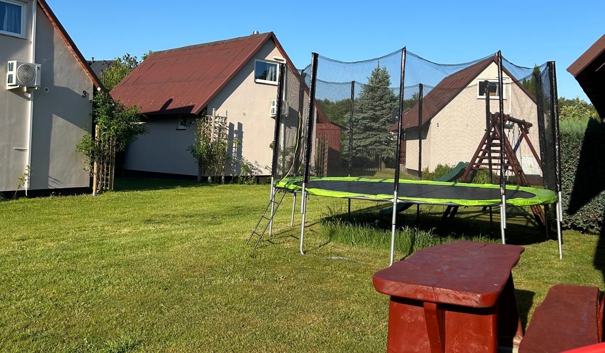 Na terenie ośrodka czeka zielony ogród sprzyjający relaksowi oraz plac zabaw, który szybko staje się centrum dziecięcej radości. Jest tu miejsce na beztroską zabawę, rodzinne chwile na świeżym powietrzu i wspólne spędzanie czasu wśród natury.